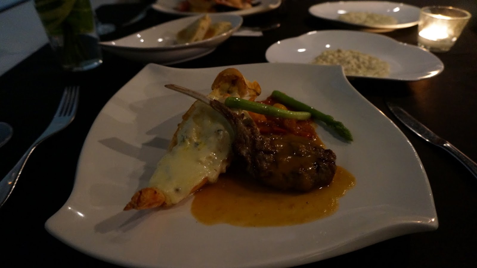 我妹的焗烤龍蝦與碳烤美國菲力牛排佐松露紅酒汁,她應該高興的快飛了吧